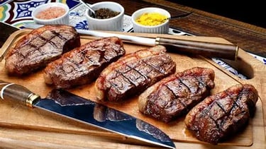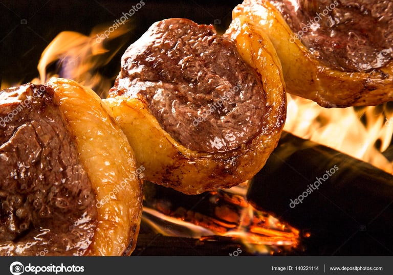Carnes selecionadas preparadas na brasa para seu evento especial.